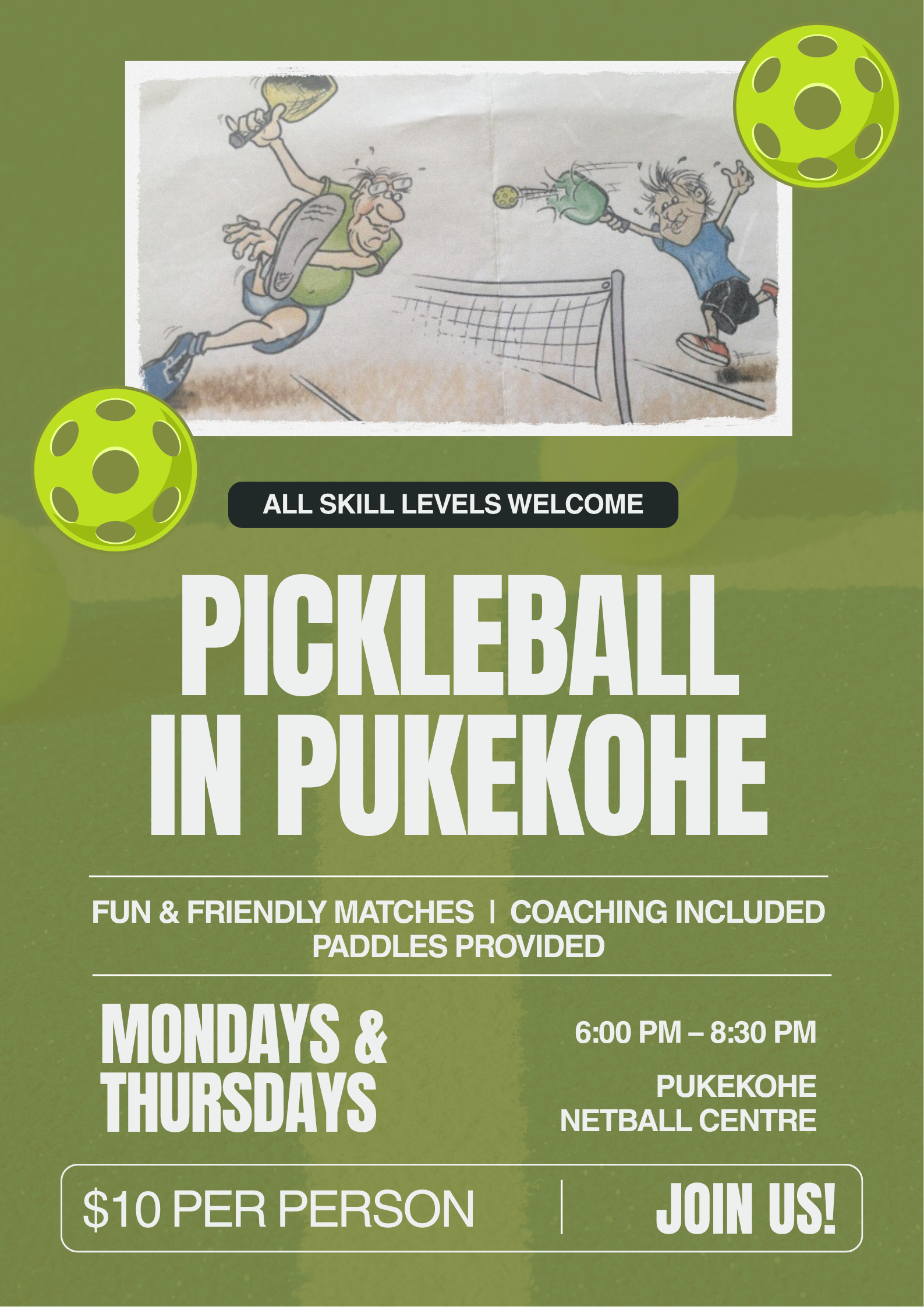 This summer, you can play Pickleball here at Pukekohe Netball Centre.